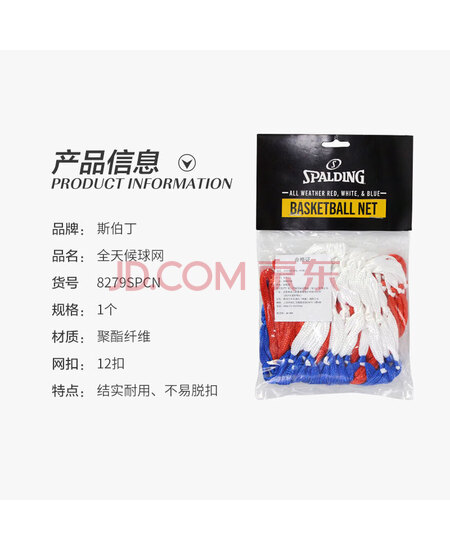 斯伯丁 篮球网加粗比赛投篮网篮框网兜 8279SPCN红蓝白(单个装)