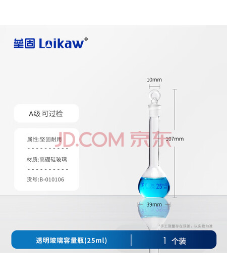 垒固 白量瓶 透明高硼硅玻璃容量瓶DFXW 25ml 白量瓶