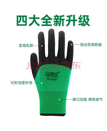 贸正 橡胶劳保手套12付 乳胶发泡胶皮浸胶半挂胶耐磨防滑工地工业干活MZS-G389