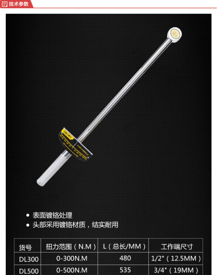 得力工具 扭力扳手指针式 0-300N.m DL300