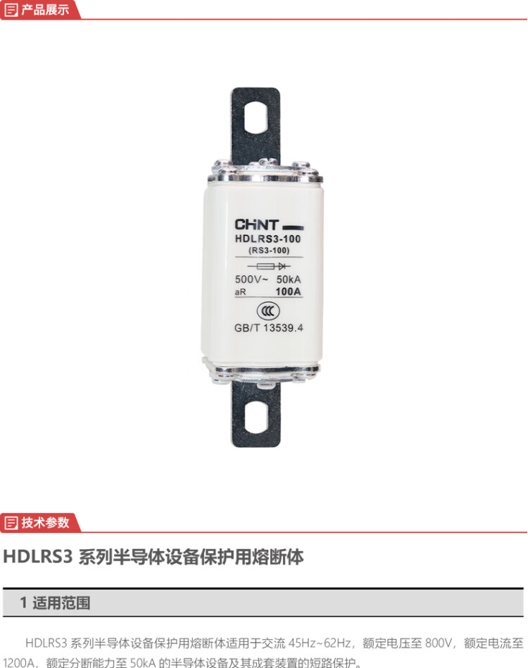 正泰 快速熔断器 HDLRS3-100 100A