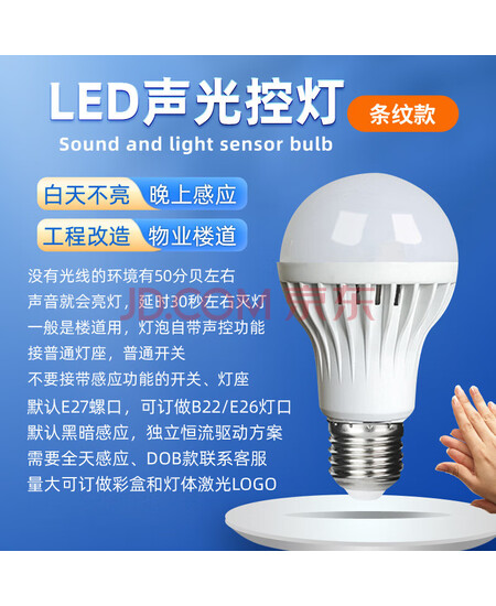 翼芯智能(YXKJ) led声控灯 走廊楼道 条纹款声光控球泡 3w 单位:个
