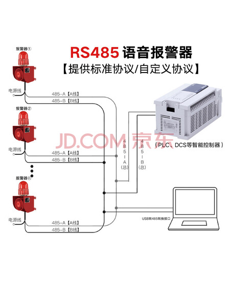 杭亚YS-01X声光报警器可受控于RS485通讯协议可通过电脑控制报警器