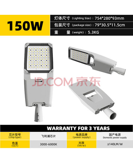 北原野子 路灯头定制市电路灯头0-10v光感应户外led路灯农村道路建设市政模组路灯【150W-白光6500K】