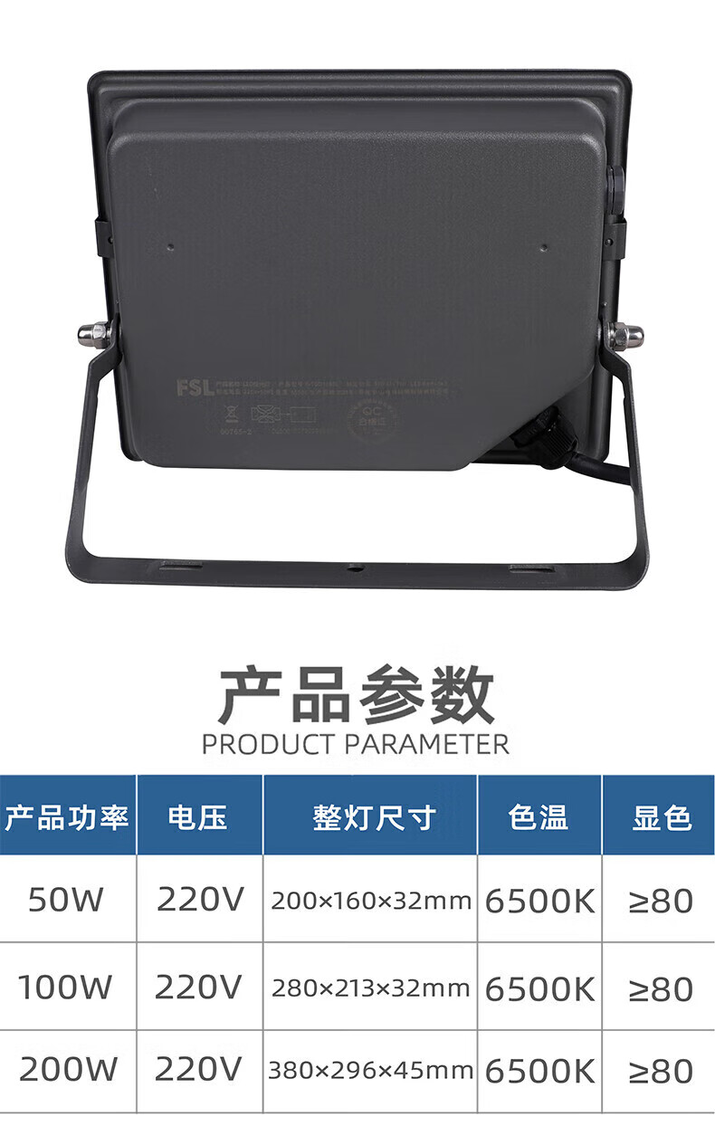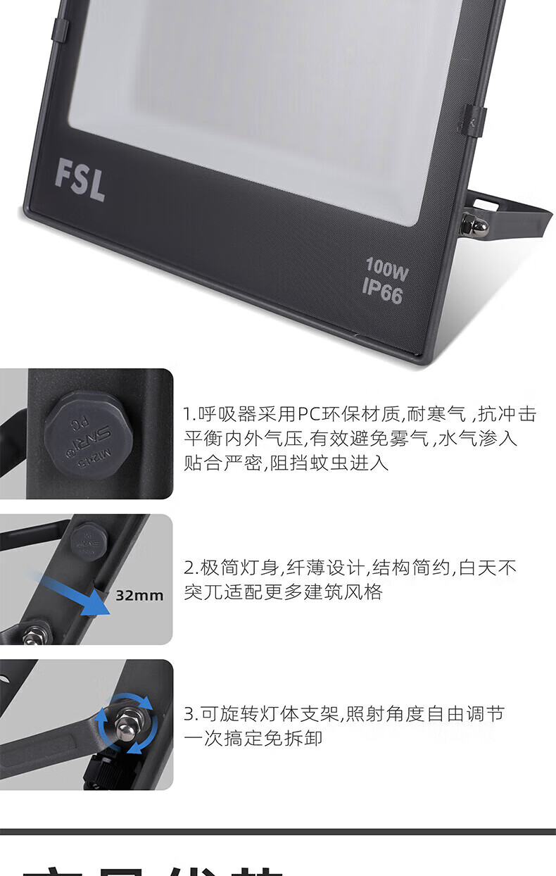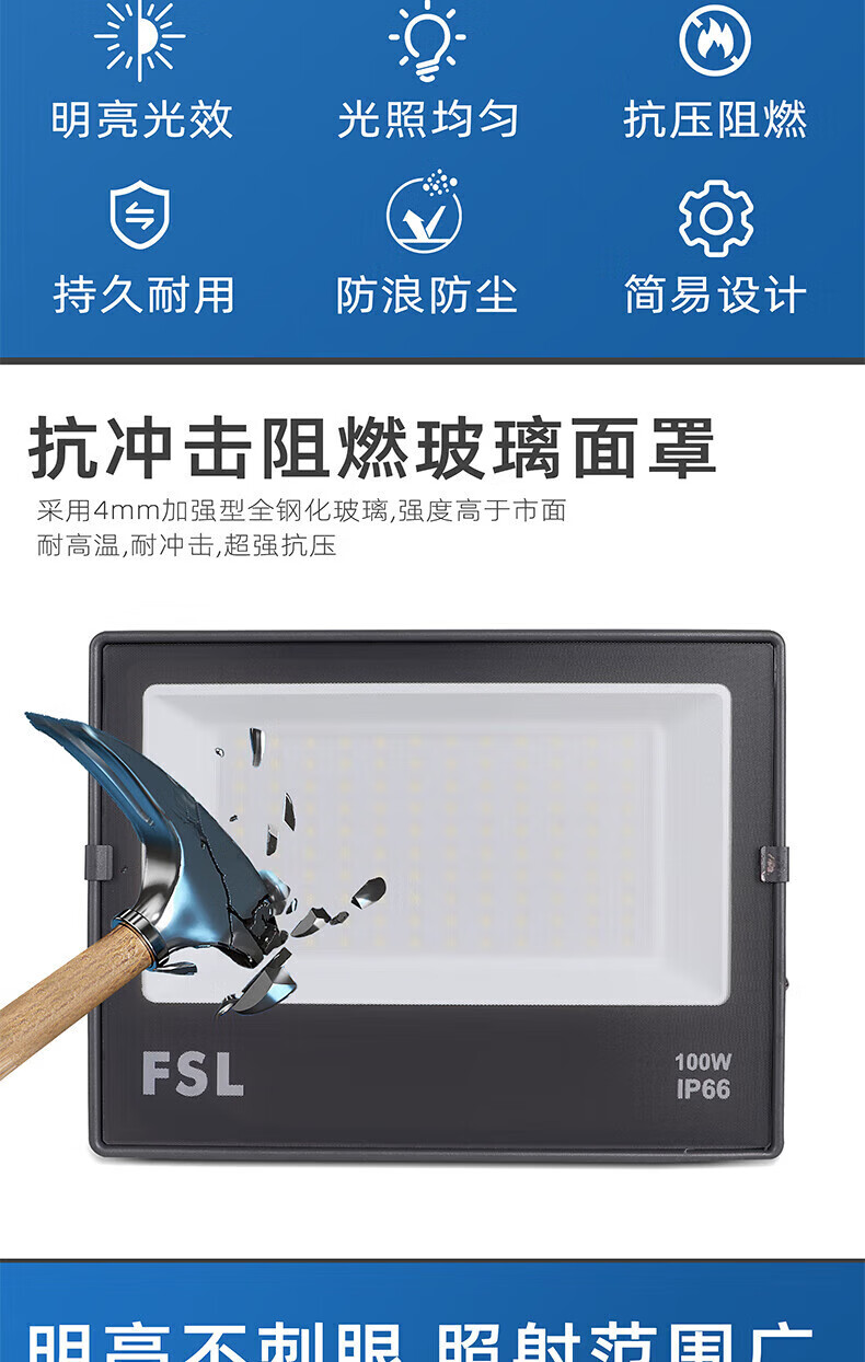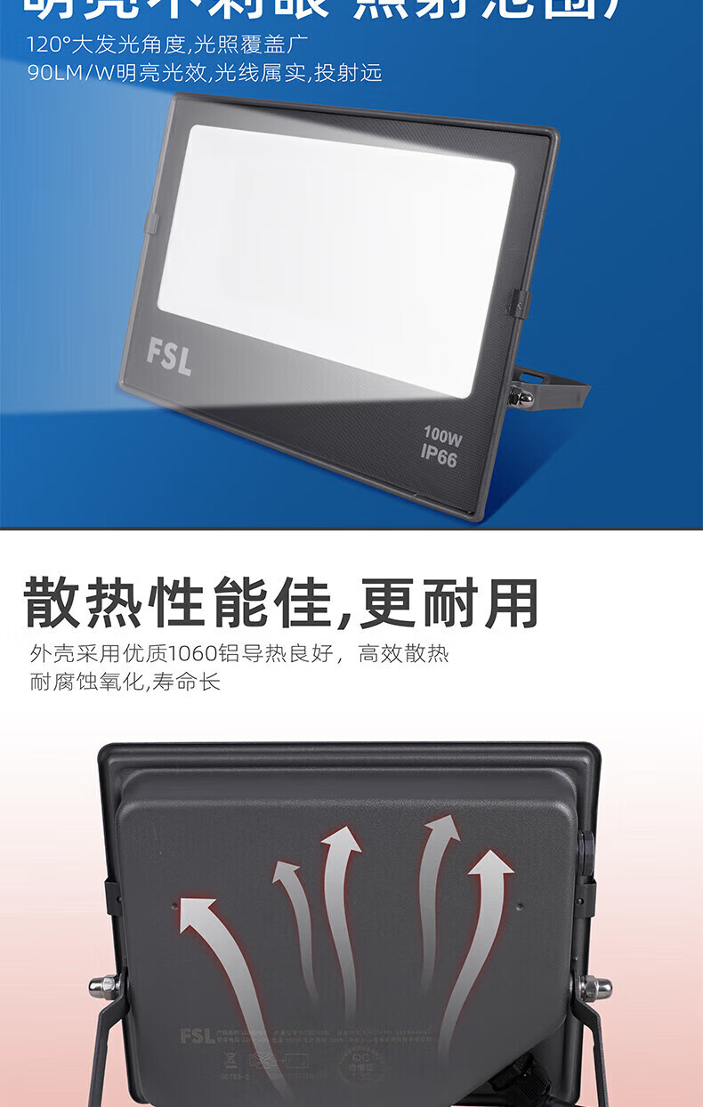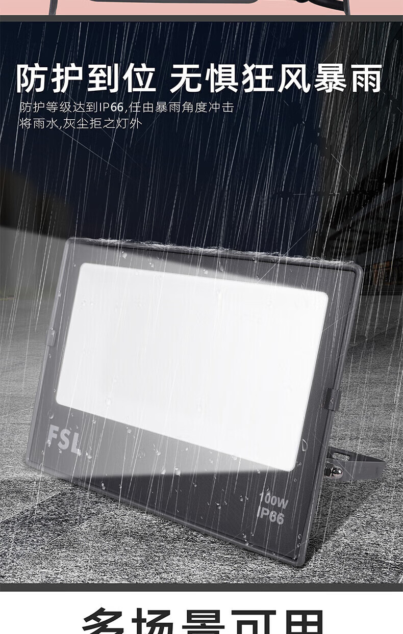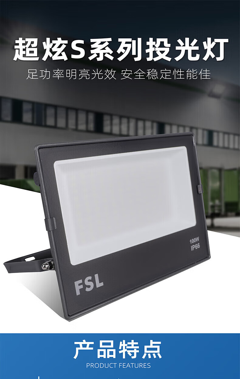 FSL佛山照明 LED投光灯 超炫S 100W IP66 白光 6500K 单位:个