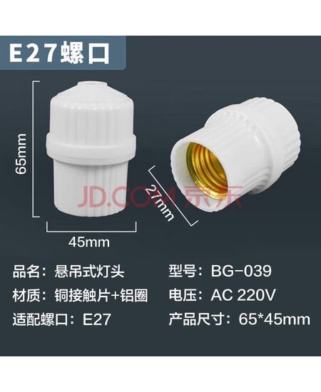 贝工 灯泡灯座 BG-039 E27螺口 铜接触片+铝圈 悬吊式瓷白螺口灯头