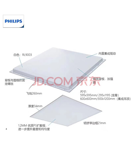 飞利浦照明 LED平板灯 RC048B+ 28W 295mm*1195mm 4000K 中性光 适用于龙骨吊顶