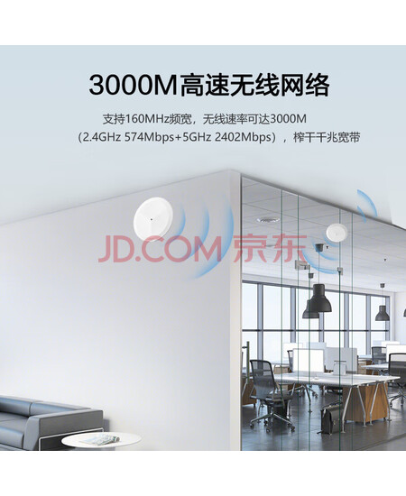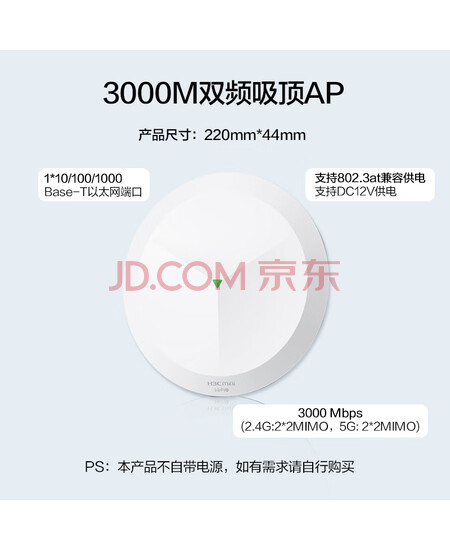华三(H3C)无线吸顶apWiFi6千兆双频3000M 160M频宽企业级全屋wifi路由器大户型办公5G覆盖Mini AP3000C-U