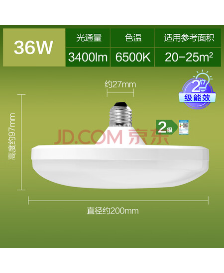 欧普(OPPLE)LED大功率灯泡飞碟灯节能E27螺口球泡家用照明超亮大瓦数36瓦白光