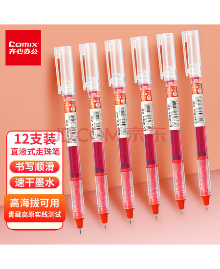 齐心 RP625 全针管直液式走珠笔/速干墨水中性笔 0.5mm红 12支/盒