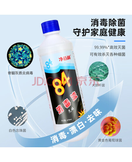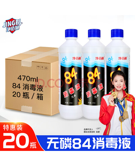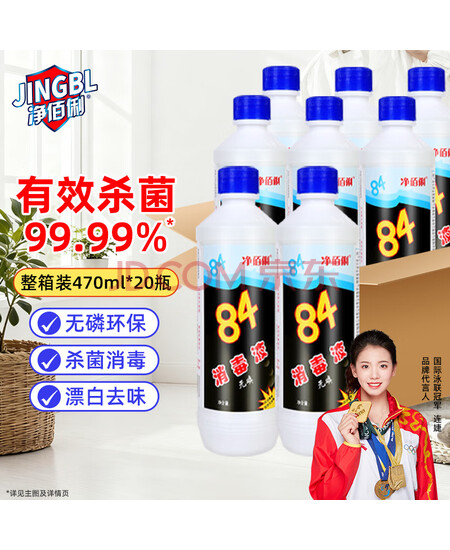 净佰俐84消毒液470ml*20瓶整箱衣物漂白八四消毒水宠物地板环境杀菌