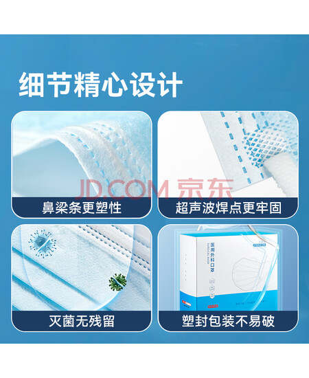 | 安全使用说明 | 1、清洗双手,打开包装;2、将口罩横贴在脸部口鼻上,用双手将两端的绳子挂在耳朵上或系在脑后;3、双手同时向上下方向将口罩的皱褶拉开,使口罩能够完全覆盖住口鼻和下颌;4、用双手的食指紧压鼻梁两侧的金属条,使口罩上端能够紧贴鼻梁。 |