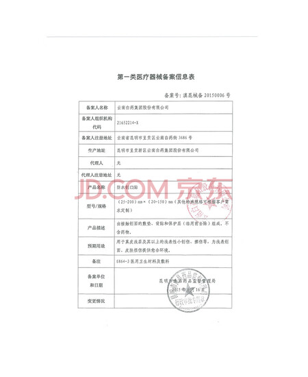 | 医疗器械注册证编号或者备案凭证编号 | 滇昆械备20150006号 |