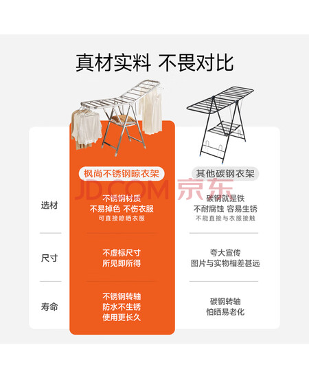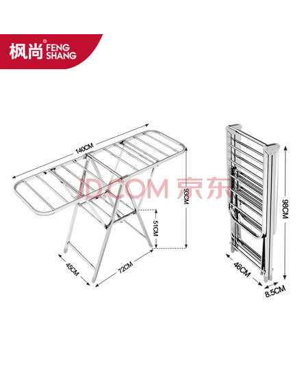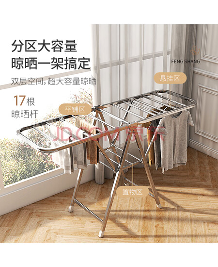 枫尚 晾衣架落地折叠室内阳台晾衣杆晒衣架不锈钢晒被挂衣架凉衣架
