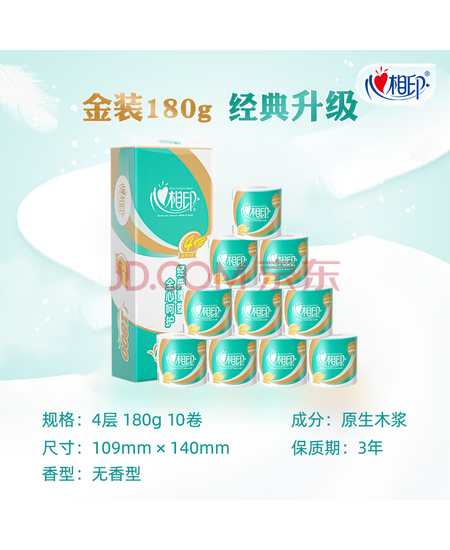 心相印BT810心相印有芯180克10粒装四层卷筒卫生纸 (升级版) 10卷/提