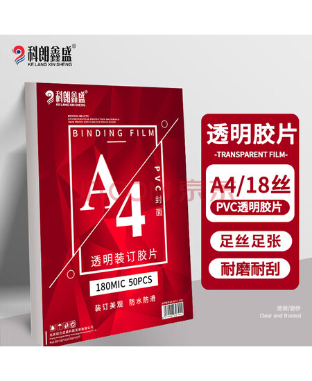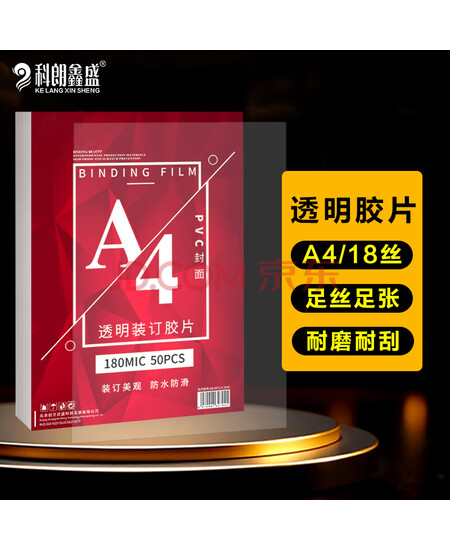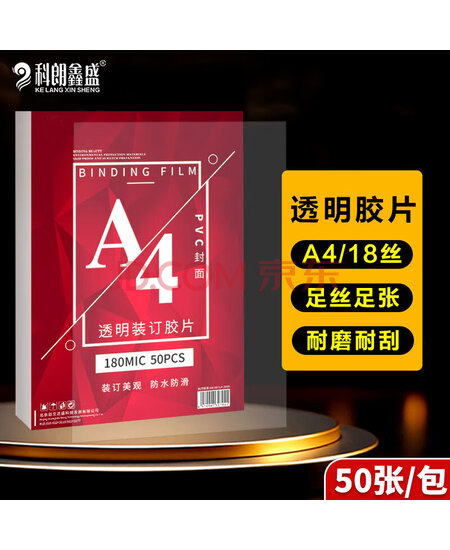 科朗鑫盛透明PVC塑料装订封面打孔装订胶片文件标书档案透明装订封皮 A4 0.18mm PVC透明胶片50张/包