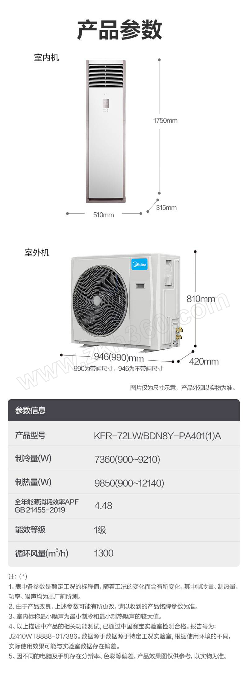 | 核心规格 | AC220V 冷暖 一级能效 裸机标配 含基础安装 自带4m铜管 其他辅材按标准收费 |