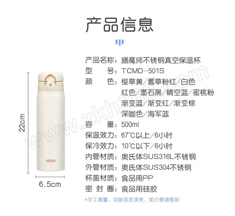 | 核心规格 | 500mL 316L不锈钢 白色 |