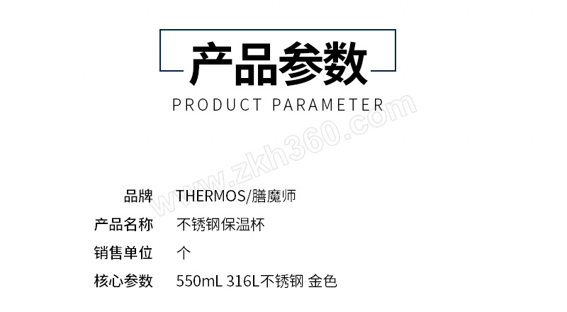 | 核心规格 | 550mL 316L不锈钢 金色 |