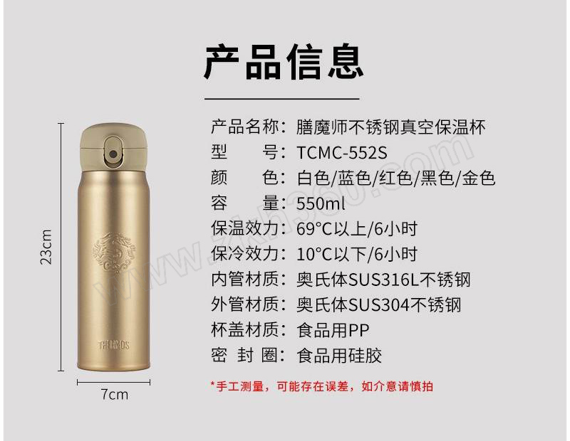 | 核心规格 | 550mL 316L不锈钢 蓝色 |