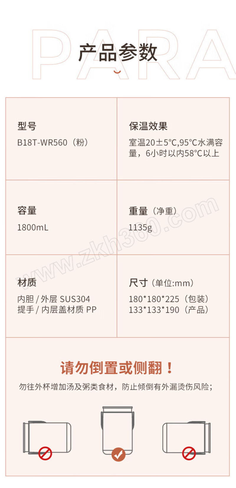 | 材质 | 内胆/外层SUS304+提手/内层盖材质PF |
