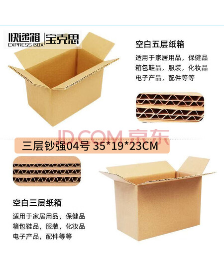 宝克思快递纸箱打包箱邮政纸箱定做纸箱批发4号三层钞强35*19*23cm(40个装)