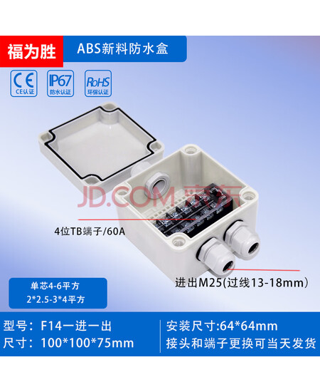 福为胜(FUWEISHENG) 防水接线盒带端子 ABS塑料户外防水分线盒 1010一进二出【6位25A端子】M20
