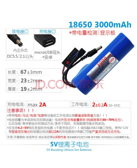 欧华远 5V圆柱锂电池单片上位机展柜LED射灯USB风扇无线蓝牙模块电源带电量板3000mAh/67*23*19