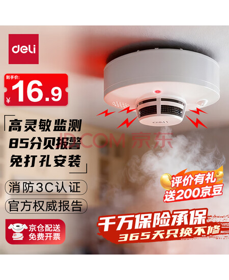 得力烟雾报警器烟感探测器家用商用消防火灾3C认证烟雾感应器家庭酒店餐馆 一年续航AG200