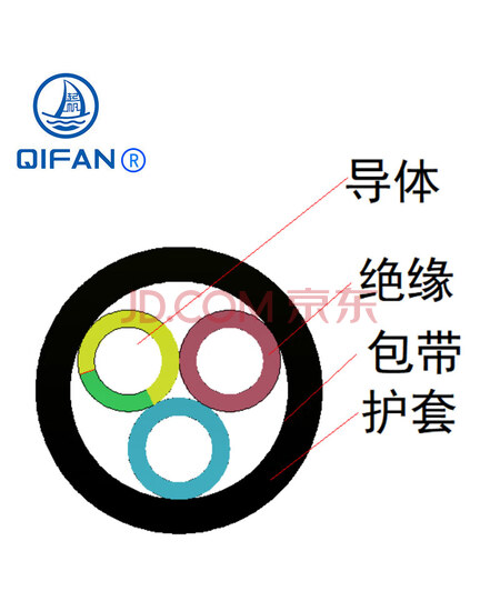 起帆(QIFAN)YGG-0.6/1KV-3*6+1*4 硅橡胶护套软电缆 黑色1米(100米起订货期15天)
