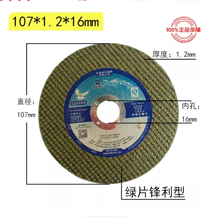 包装清单: 白鸽 切割片 107*1.2*16 单位:片