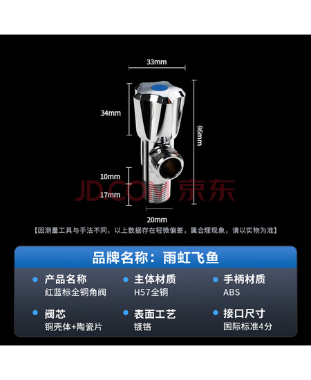雨虹飞鱼角阀全铜加厚陶瓷阀芯八字阀三角阀冷热水两用角阀