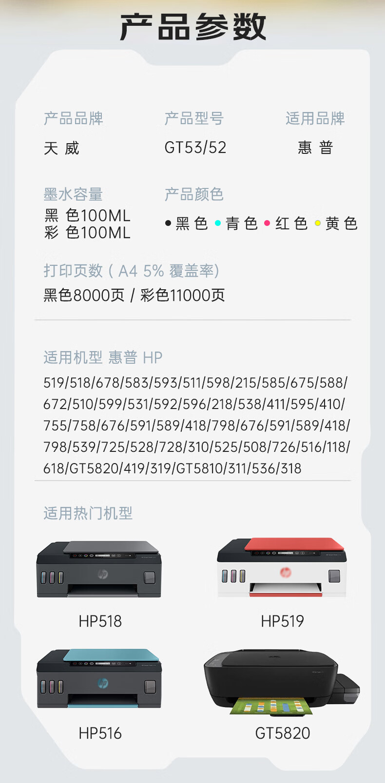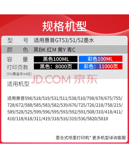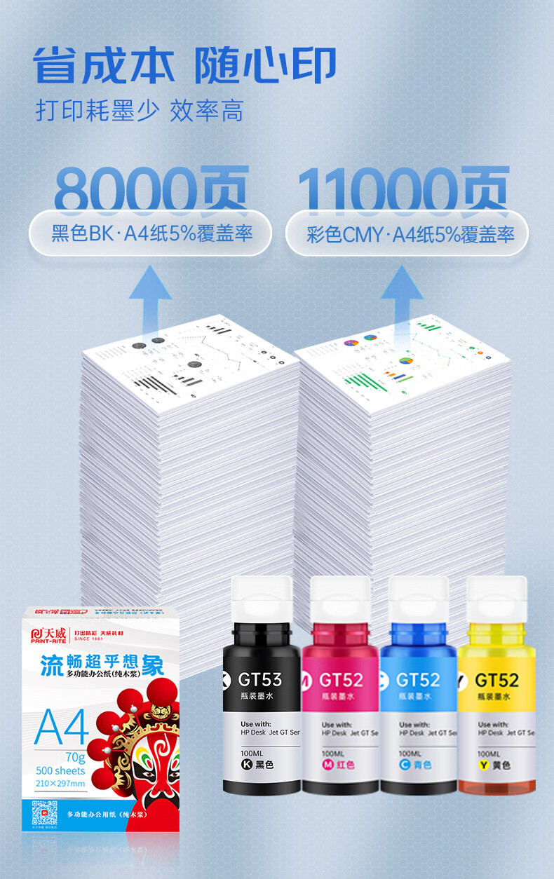 | 墨盒型号 | GT51/GT52/GT53 |