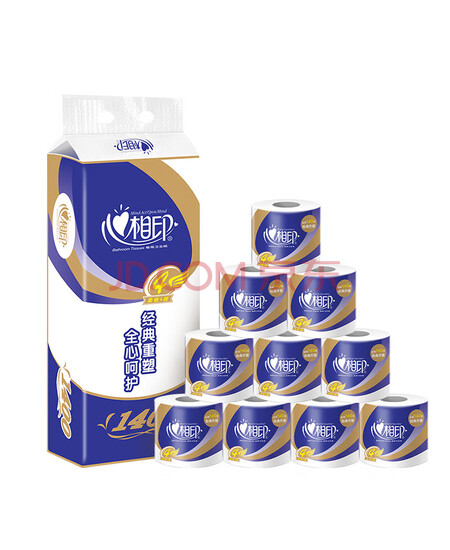 心相印 BT910蓝色心柔3层有芯卷纸140G 卫生纸巾卷筒纸袋装 10卷/提