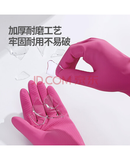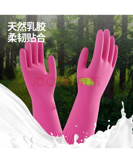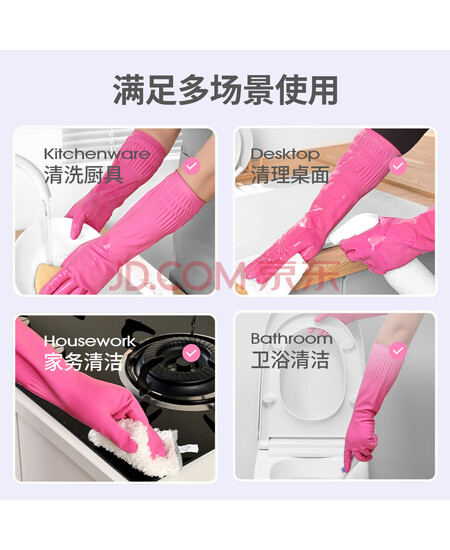 云蕾家务手套厨房耐用女韩式粉色进口乳胶洗碗防水手套加长38cm1双装