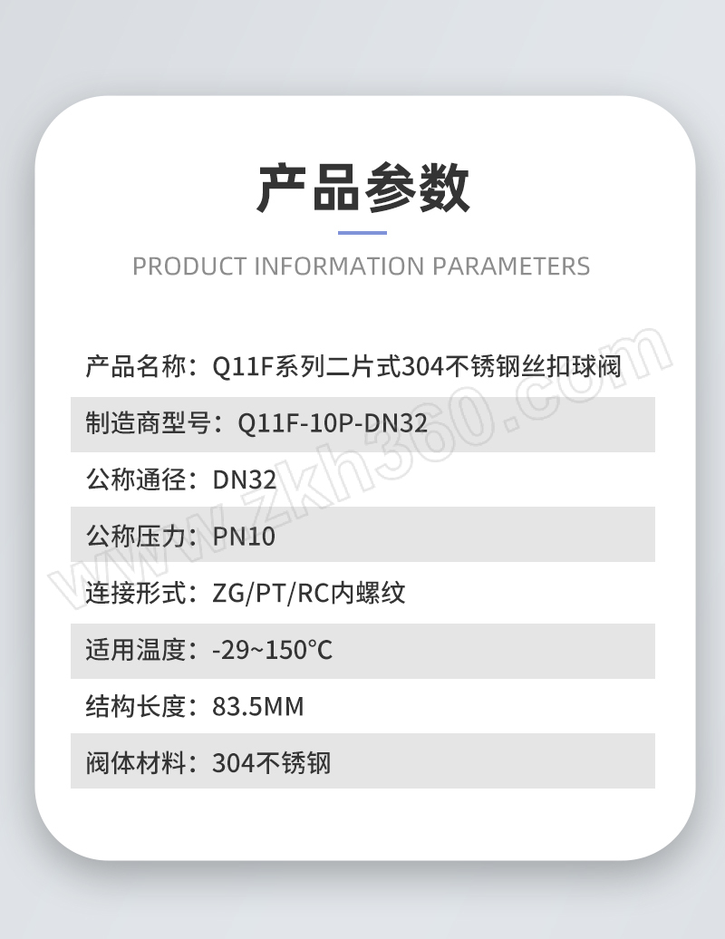 | 产品名称 | Q11F系列二片式304不锈钢丝扣球阀 |