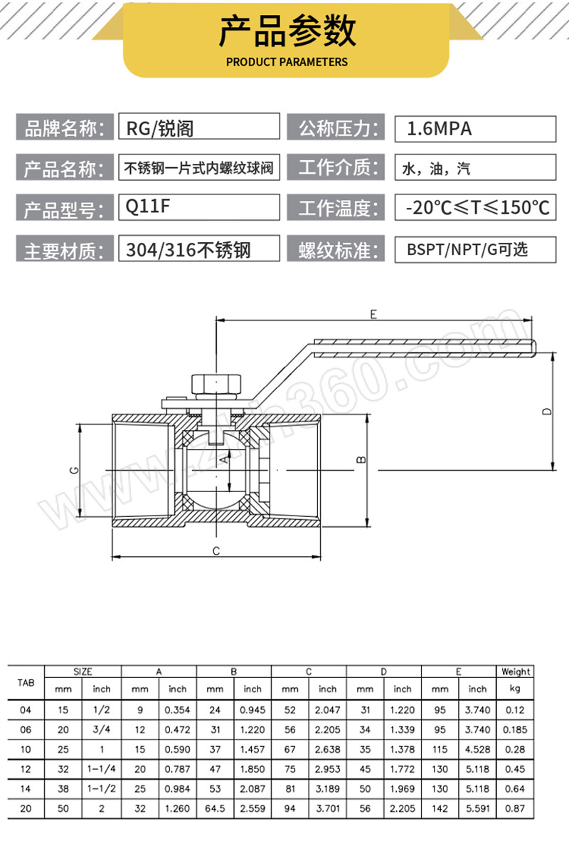 | 产品名称 | Q11F系列304不锈钢一片式内丝球阀PN16 |