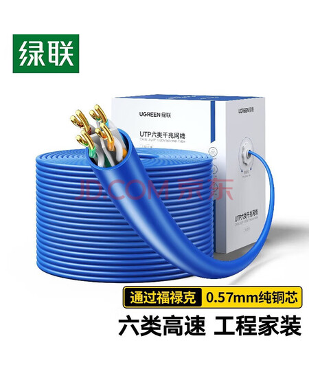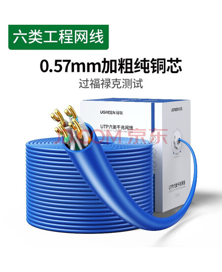 绿联 NW109蓝色 六类千兆非屏蔽网线工程版纯铜线芯 305米整箱网线11259