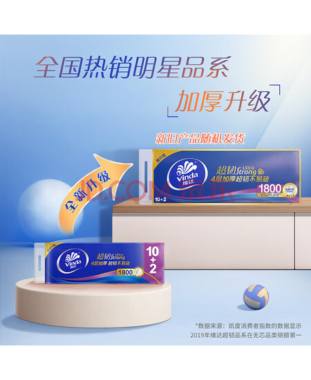 包装清单: 4层加厚超韧无芯卫生卷纸v4459 150g/卷*60卷
