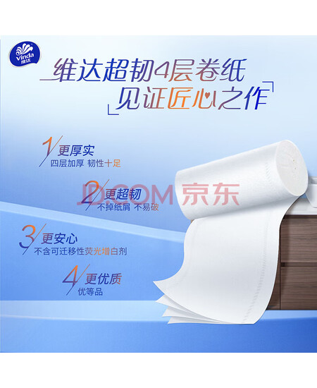 维达卫生纸厕纸卷筒纸 4层加厚超韧无芯卫生卷纸v4459 150g/卷*60卷