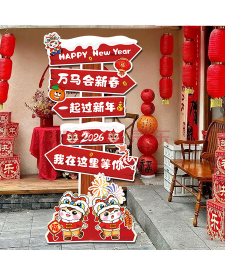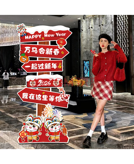 欧妮姿新年装饰迎宾台2026马年家用商场幼儿园春节氛围布置福字过年装饰