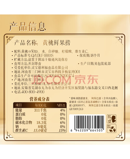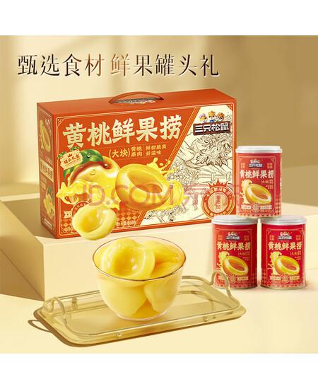 包装清单: 三只松鼠黄桃鲜果捞425g*6罐礼盒装*1