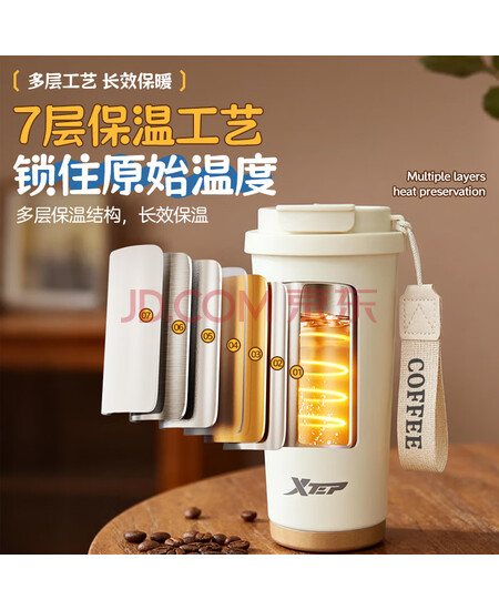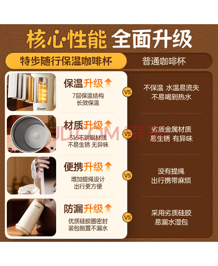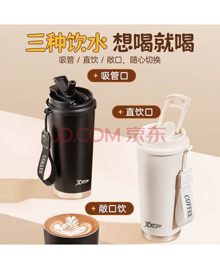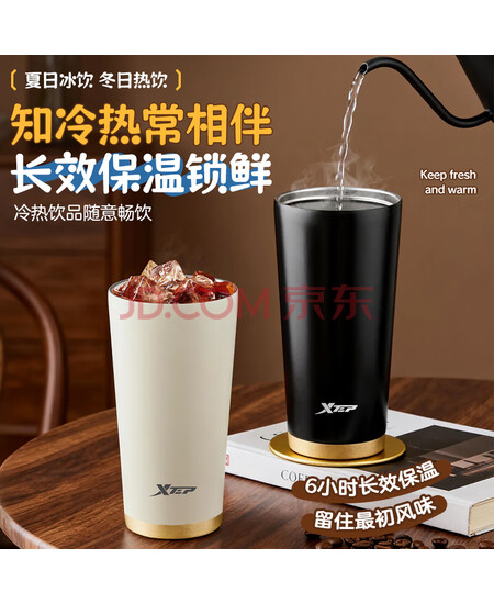特步(XTEP)保温咖啡水杯316食品级杯子男女士学生不锈钢男款咖啡杯京东自营