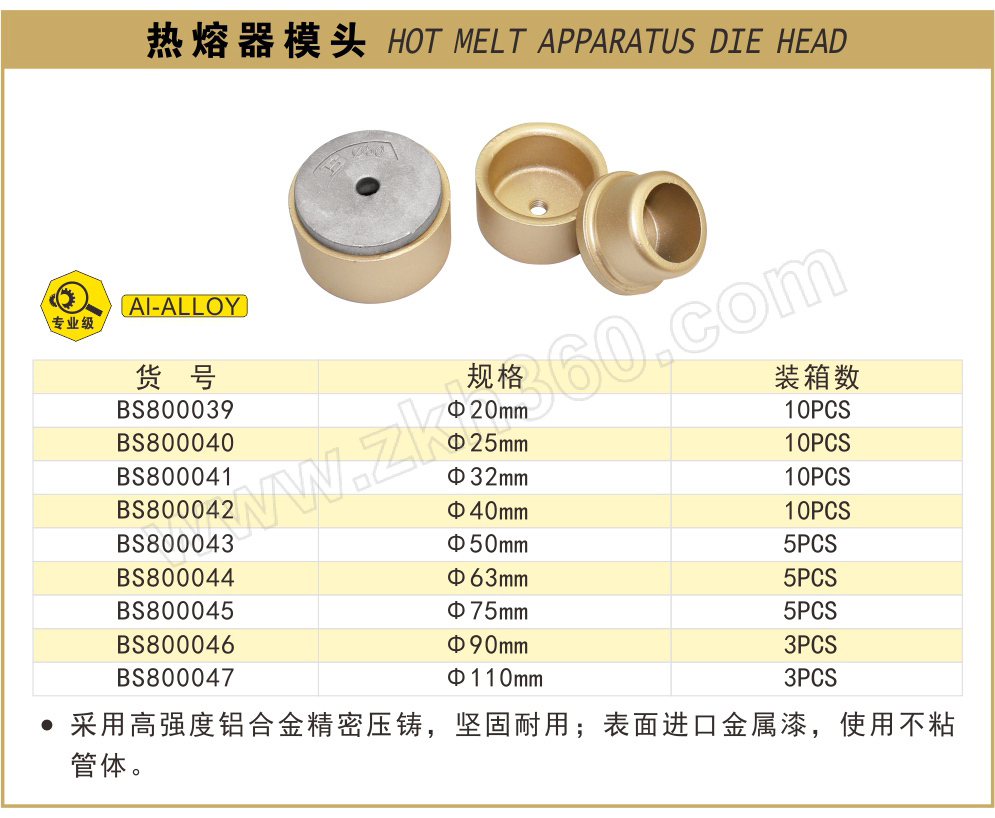 ·采用高强度铝合金精密压铸,坚固耐用,表面进口金属漆,使用不粘管体。
